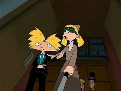 After he walks her home, he follows his grandfather's advice and asks her if she'd like to go to the April Fool's Dance held at the school. At the dance, Arnold and Helga dance, but when she went to the girls bathroom, she reveals to Phoebe that she's pretending to be blind only to reveal to Arnold that it's another prank, but Gerald overhears this and tells Arnold. They come up with a plan to finally get back at Helga without hurting her this time. Arnold and Helga dance while Gerald opens up the pool that's in the gym. Right before the King of Fools is announced, Helga reveals she pranked Arnold, But Arnold reveals he found out about her prank and spins Helga right into the pool. Eugene was announced to be the king of fools, but while he was walking he falls into the pool. Helga swam back up and Arnold told her the jokes on her this time cause he knows she’s not blind, Helga told him he wins and ask him to help her up, but she threw him in the pool, causing everyone to jump in as well.